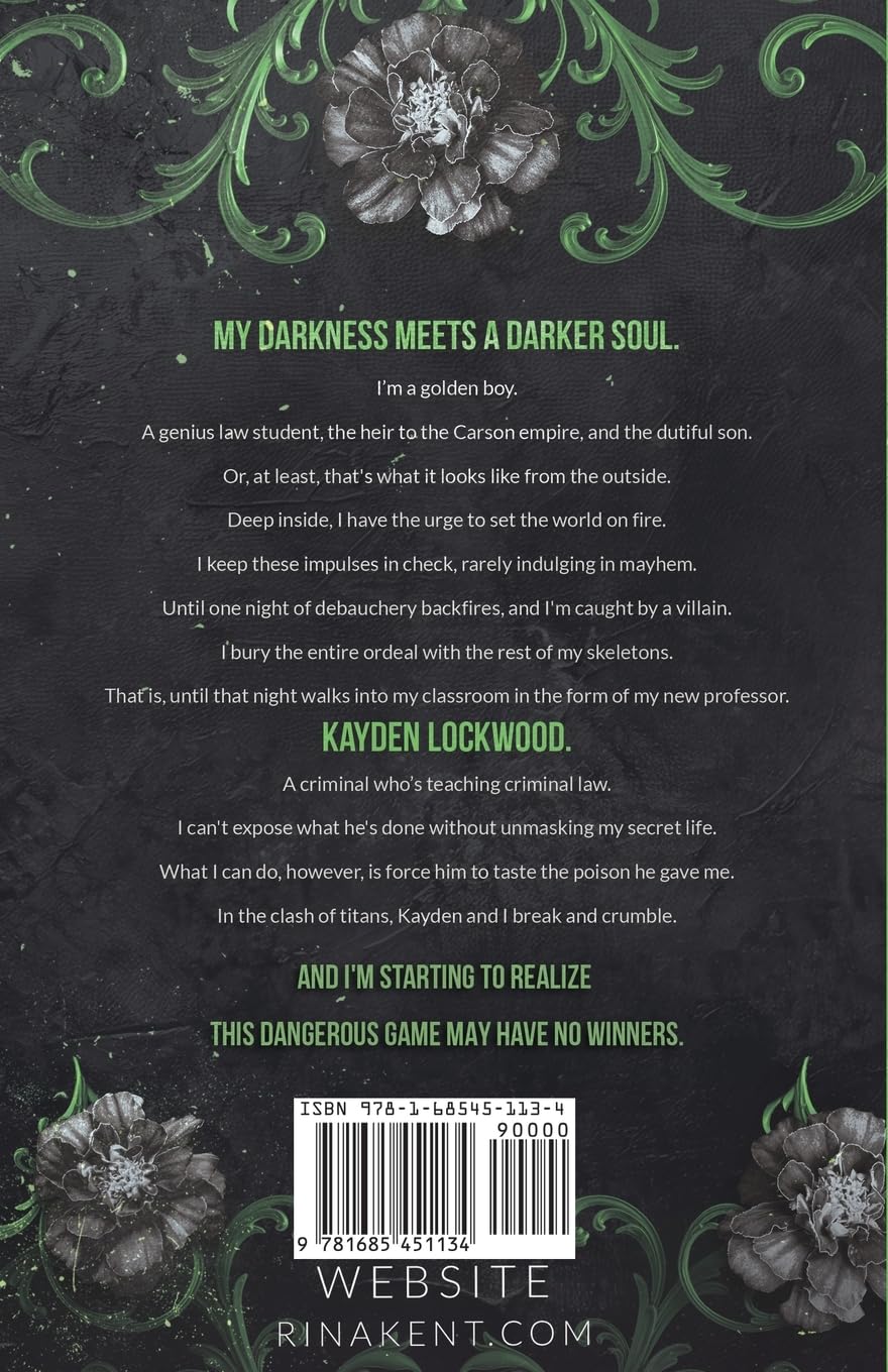 From USA Today bestselling author Rina Kent comes a scorching standalone professor/student dark MM romance set in the Legacy of Gods' world. This is Kayden & Gareth's story. More information is coming soon. While this book can be enjoyed on its own, dive into the Legacy of Gods series to get acquainted with the characters.