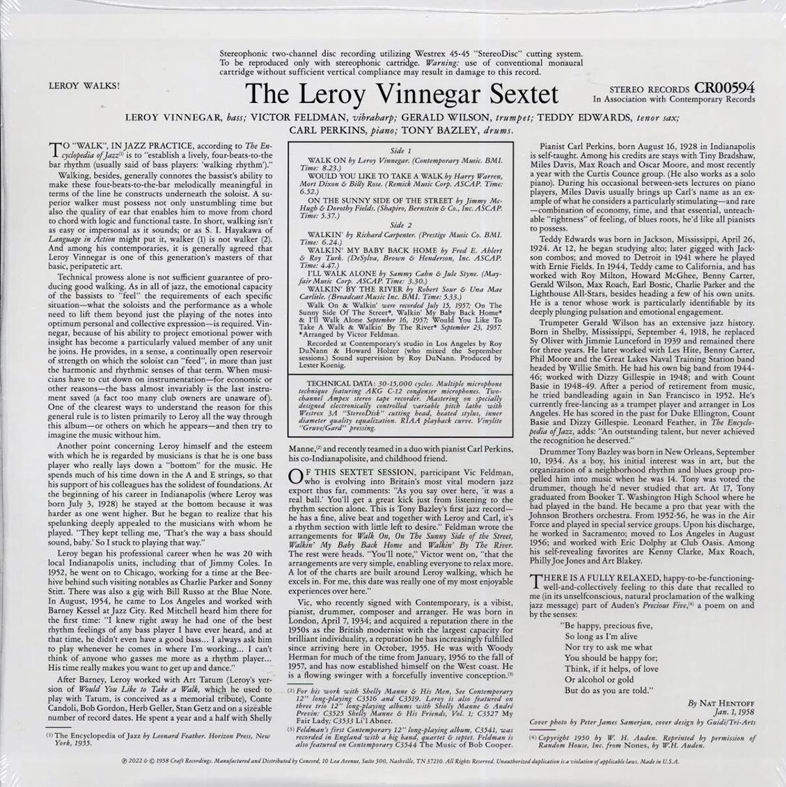 The Leroy Vinnegar Sextet - Leroy Walks! (180g) - Vinyl LP, LP